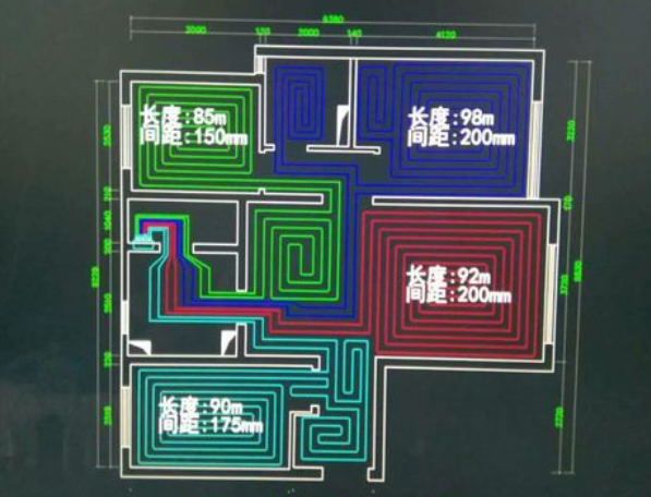 另外需要注意一點,如果各個回路長度差距過大,那么地暖循環內的水力很難平衡,可能會出現部分區域熱部分區域不熱的情況,所以一般需要把各個回路的長度差距需要控制在20m以內。